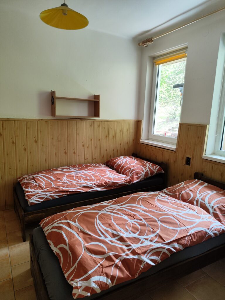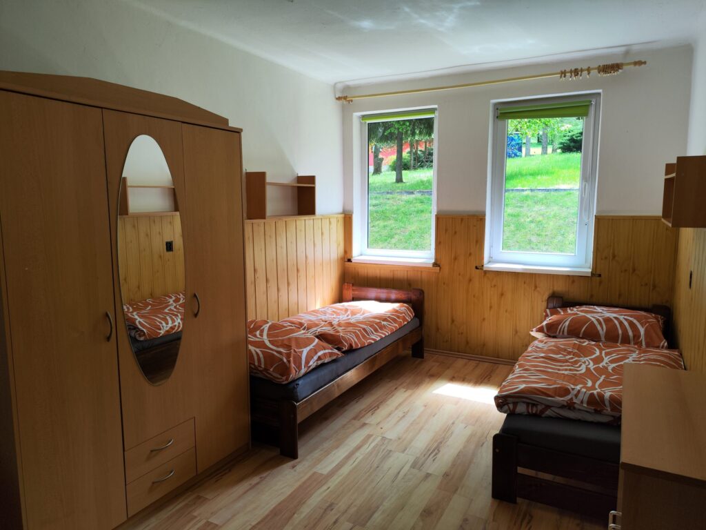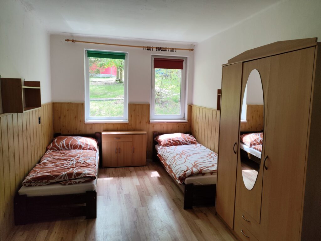 3 drevené dvojpodlažné chaty, každá s kapacitou 36 lôžok v 10 izbách. Toalety a kúpeľne sú spoločné na každom podlaží. Izby sú 2-4 -lôžkové zariadené jednoduchým nábytkom. Kapacita ubytovania na drevených chatách je 118 pevných lôžok. -4 murované bungalovy, každý s kapacitou 14 lôžok v 4 izbách. Izby sú 3-4 -lôžkové. Toalety a kúpeľne sú spoločné pre 2 izby. Izby sú zariadené komfortnejšie. Kapacita ubytovania na murovaných bungalovoch je 56 pevných lôžok.